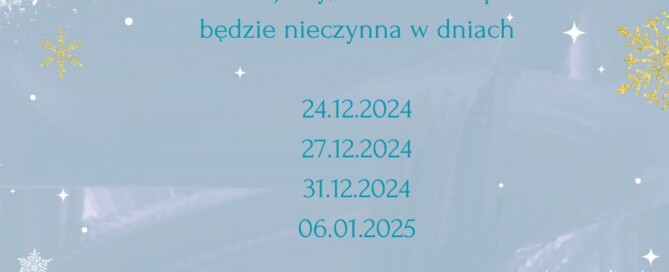 Harmonogram pracy – firma nieczynna: 24, 27, 31 grudnia i 6 stycznia